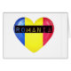 Découpe du coeur du drapeau de la Roumanie avec superposition du texte étiquette