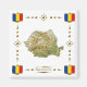This design comprises a Romanian map within a border featuring the national flag.