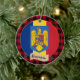 Romania, Red buffalo plaid & Romanian Flag Ceramic Ornament