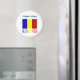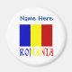 Romania and the Romanian flag with blue personalization on a round magnet. Add a name in blue letters to this magnet with the flag of Romania and the word ROMANIA underneath, in the colours of the flag. Great for a memento of a family reunion, travel group, or club. Wonderful for celebrating your heritage.. Great stocking stuffer.