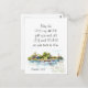 Postcard with inspirational quote scripture depicts a simple watercolor landscape including a house on the lake with trees and sea grass. It features an encouraging Christian Bible Verse Romans 15:13, "May the GOD of HOPE fill you with all JOY and PEACE as you trust in Him." The greeting, prayer can be customized or deleted for a hand written message.