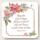 Inspirational scripture set of six coasters depicts red and pink watercolor Poinsettias, berries and greenery on an elegant gold frame. It features a portion of an encouraging Bible Verse Romans 15:13, "May the God of Hope fill you with all Joy and Peace as you trust in him."