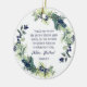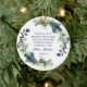 Inspirational scripture personalized Christmas ornament depicts a wreath with pine branches and blue berries. It features Bible Verse Romans 8:15, "You did not receive the spirit of slavery again to fear, but you received the Spirit of Adoption by whom we cry out, "Abba, Father." Customize the back with a name and blessing or the details of your choice.