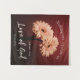 Tapestry with Christian inspirational quote scripture depicts a simple floral photograph by Victoria Aleksandrova, with two pretty pink, peach flowers on a brown background. It features a portion of an encouraging Bible Verse Romans 8:39, "Nothing can separate us from the Love of God."