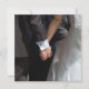 A romantic and elegant wedding invitation with a Photograph of a couple holding hands. The image focuses on the couples hands clasped together in love, while wearing their fancy wedding attire. She in her wedding gown and he in his tux. Personalize with your own details.