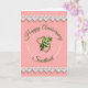 This romantic anniversary card is decorated with pearl and lace trim, center image of two metallic gold entwined hearts with lilies of the valley. You can edit all of the text on the front and inside to make this card more personal or suitable for a different occasion.