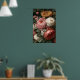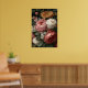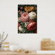 This romantic antique-style art print features a deeply toned floral arrangement of blush peonies, cream roses, and golden chrysanthemums nestled in shadowed greenery. The Dark moody palette and rich textures evoke the elegance of old master paintings, making it perfect for sophisticated, vintage-inspired interiors.