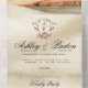 This elegant wedding invitation design features a watercolored leaf crest with a pumpkin accent. The top flap has a watercolor painting of a charming old barn surrounded by farmland. You can personalize the wedding crest with your initials. The back has a watercolor wash in coordinating colours. This lovely invitation is perfect for an autumn wedding.
