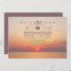 coral and pale purple colours beach wedding invitation with romantic sunset by the sea. Stylish handwritten typography design with nautical decor. Perfect invite for beach, coastal or destination weddings.
