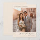 This wedding thank you card features a warm, romantic design with a couple standing against an old stone building bathed in soft sunlight. The color palette includes beige, gold, and soft brown tones, creating a nostalgic and intimate atmosphere. Elegant cursive typography highlights the phrase "LOVE AND THANKS" at the top, while customizable placeholders for names and dates are seamlessly integrated into the layout. The overall style is classic and sophisticated, perfect for commemorating your special day with a timeless touch.