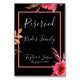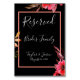 Romantic Black & Orange Floral Script Wedding Table Number