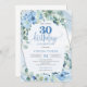 Romantic blue flowers eucalyptus and silver 30th invitation
