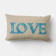 Romantic Blue Green Periwinkles Floral LOVE design Lumbar Pillow