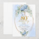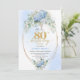 Romantic Blue Hydrangea Gold Floral 80th Birthday Invitation