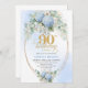 Romantic Blue Hydrangea Gold Frame 90th Birthday Invitation