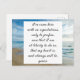 "I've come here with no expectations, only to profess, now that I am at liberty to do so, that my heart is, and always will be, yours." ~ Edward Ferrars to Elinor. This postcard features a romantic quote by Jane Austen from her novel Sense and Sensibility in an elegant black font script, and a blue ocean sea sky background. Perfect for sending to the one you love!