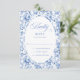 Romantic Blue Toile Roses Custom Wedding RSVP Card