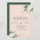 Romantic Blush & Green Glitter Wedding Invitation