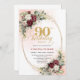 Celebrate an unforgettable milestone with this 90th birthday invitation, beautifully designed in a boho and bohemian style featuring soft watercolor blush and burgundy florals accented by an elegant gold frame. This refined design combines warmth, sophistication, and timeless charm—perfect for honoring a very special occasion.