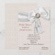 Beautiful pale pink and white coloured bridal shower invitation, with a white lace like design, in a pale pink background. Graphics of a white ribbon and bow, at the top, is decorated with a pretty big pearl jewel. Personalize all the text to suit your special event. Lovely keepsake invitation the bride to be will love.