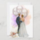 Celebrate your special day with this beautifully designed wedding invitation featuring a romantic illustration of a bride and groom holding balloons. Soft watercolor tones blend with golden accents to create a timeless and elegant look. Perfect for modern couples who want a unique yet classic invitation to share their love story.