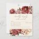 This Elegant Burgundy and red floral wedding rsvp card features your wedding details in modern lettering, set in a oval frame of dusty beige white with watercolor flowers and botanical foliage in desert inspired earth tone shades with burgundy,red,maroon and ivory colour with warm copper colour text.vintage frame touch make this vintage floral invitation unique.A perfect crimson red vintage wedding rsvp card for summer, spring fall and winter weddings.
