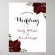 Romantic Burgundy Red Rose Wedding Sign Reception Poster Sign