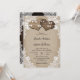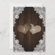 This romantic rustic country wedding invitation featuring two burlap hearts against a distressed burlap background adorned with white floral lace and string lights is perfect for inviting your guests to your rustic country/barn wedding party. Barn wood decorated with string lights, lace and two burlap hearts with monograms at the back.