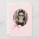 This trendy design features a coquette aesthetic pink bow and your bride's photo. Customize with the bride's name, two photos, and the date or location.