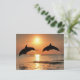 Amazing animal card showing two dolphins jumping at sunset.