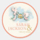 Utilize this beautiful wedding sticker on invites, thank you cards, favours, and more! Beautiful wedding doves with coral-coloured accents where text is easily updated prior to placing into your shopping cart.