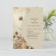 Invite your guests with timeless elegance using this dreamy floral wedding invitation. Blush and beige peonies, garden roses, and soft wildflowers frame your wedding details beautifully against a warm brown background with golden shimmer accents. Designed for rustic, boho, and vintage-inspired weddings, this invitation blends botanical softness with refined charm. Fully customizable with names, date, and venue. Part of a coordinated floral suite with matching RSVP cards, menus, signage, and more. This design was created using AI technology. Click ‘Personalize’ to customize your invitation today!