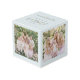 Romantic Dusty Blue Floral Botanical Family Photo Cube Keepsake with Personalized 4 Photo Collage and Elegant Watercolor Design.