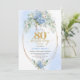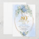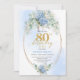Romantic Dusty Blue Floral Gold 80th Birthday Invitation