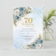 Romantic dusty blue florals gold frame 70 birthday invitation