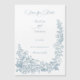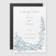 This romantic and classic design features a lush border of elegant line drawn roses, mixed flowers, lily-of-the valley, foliage and vines in a timeless dusty blue color. Also included are editable text fields and custom calligraphy text.