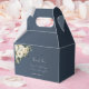 Exuding elegance and romance, this Romantic Dusty Blue with White Roses Wedding Favour Box is the perfect way to express your gratitude to your guests. Carefully crafted with a gorgeous shade of blue, the favour box stands out from the crowd and certainly adds an enchanting touch to your memorable day. The box is adorned with delicate white roses, flawlessly paired with the floral theme (there's also another rose bouquet on the back of the gift box) to elevate your dusty blue, boho wedding reception. The intricate design and soft hues enhance its rustic appeal, making it fit seamlessly into any bohemian or rustic wedding theme. What's more? This rustic favour box doesn’t just gleam with style but also with sophistication, thanks to the elegant typography. Personalize this boho wedding gift box for guests with a special message and create an unforgettable keepsake. Whether you're planning a rustic blue wedding or looking for the perfect gift box for wedding guests, this favour box adds a unique and charming touch to your special day.