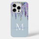 Romantic Dusty Blue Wisteria Monogram Script Name Case-Mate iPhone Case