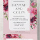 Elements: Roses and peonies on a dusty rose background. Your details are framed in a modern geometric frame. Modern sans serif fonts are used for a clean look. Colours: dusty rose, burgundy, marsala, mulberry, blush, mauve, cream, plum, green. Themes: romantic, botanical, boho, natural, enchanted garden, vintage, country. Bohemian garden. Collection: Romantic Dusty Rose Peony Modern Frame Wedding Collection. Product Type: All-In-One Wedding Invitations