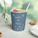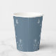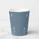 Unique simple wedding paper cup featuring romantic and elegant white flowers and butterflies on dusty blue background