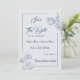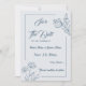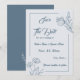 Unique simple wedding save the date card featuring romantic and elegant dusty blue flowers on light blue background