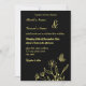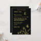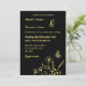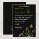 Unique simple wedding invitation featuring romantic and elegant gold flowers and a butterfly on black background