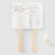 This romantic elegant gold calligraphy program fan is perfect for a simple wedding. The modern classic design features fancy swirls and whimsical flourishes with gorgeous elegant hand lettered faux gold foil typography. Include the name of the bride and groom, the wedding date and location, thank you message, order of service, and bridal party. Order your programs assembled or non-assembled.