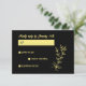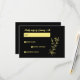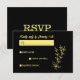Unique simple wedding response card featuring romantic and elegant gold flowers on black background