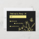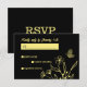 Unique simple wedding response card featuring romantic and elegant gold flowers on black background
