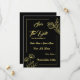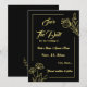 Unique simple wedding save the date card featuring romantic and elegant gold flowers on black background