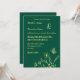 Unique simple wedding invitation featuring romantic and elegant gold flowers on emerald green background