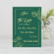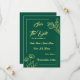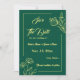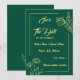 Unique simple wedding save the date card featuring romantic and elegant gold flowers on emerald green background