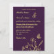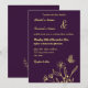 Unique simple wedding invitation featuring romantic and elegant gold flowers and a butterfly on purple background