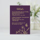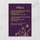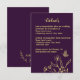 Unique simple wedding enclosure card featuring romantic and elegant gold flowers and a butterfly on purple background